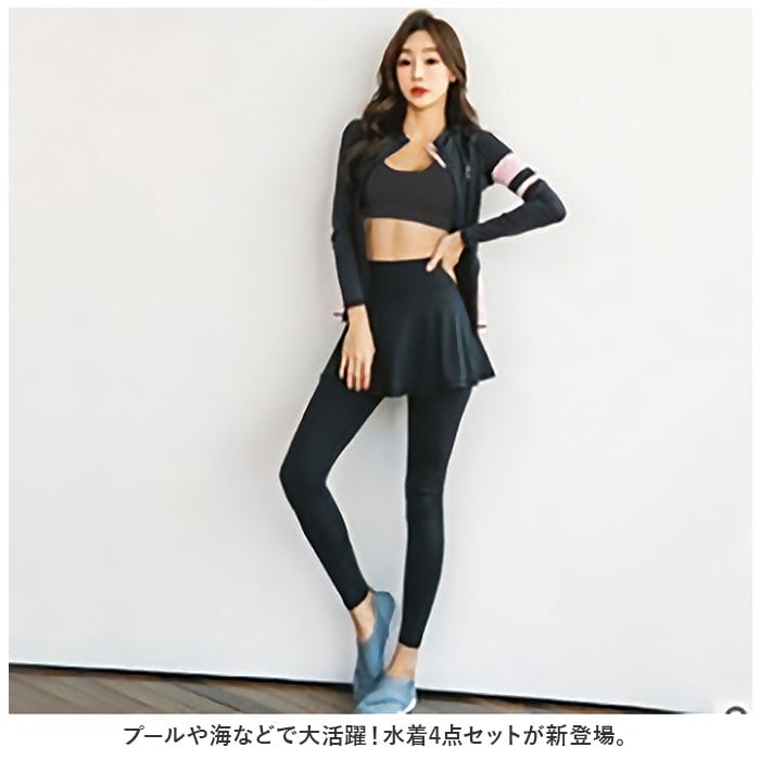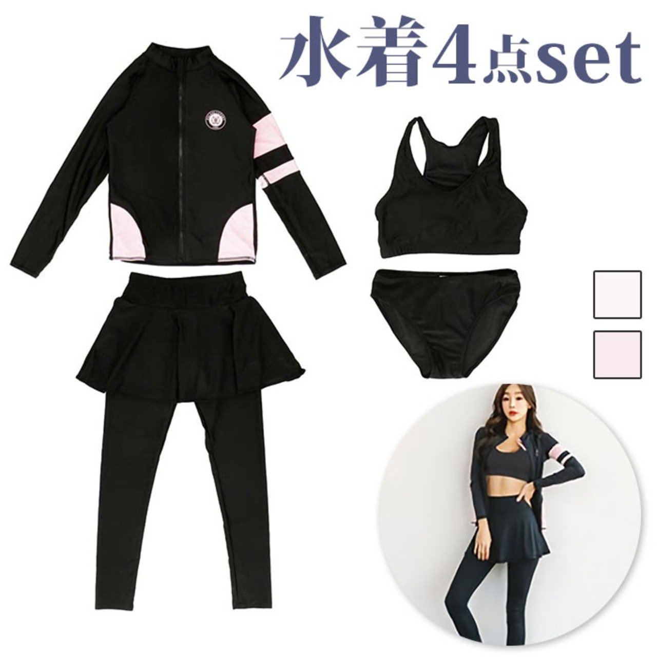 水着 レディース 4点セット 通販 長袖 ラッシュガード レギンス ショートパンツ フィットネス水着 ママ水着 スイムウエア スポーツウェア セパレート 体型カバー 4点 セット 吸汗 速乾 大人 女子