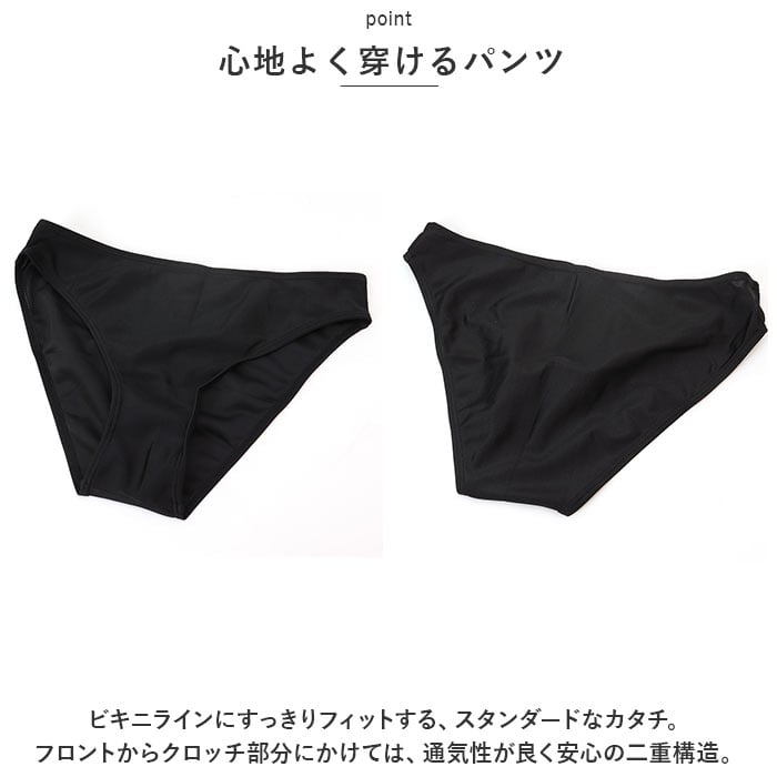 ・トップスは頭からすっぽり被るだけ。バスト部分のパッドは取り外し可能で、洗濯時の型崩れの心配も不要!