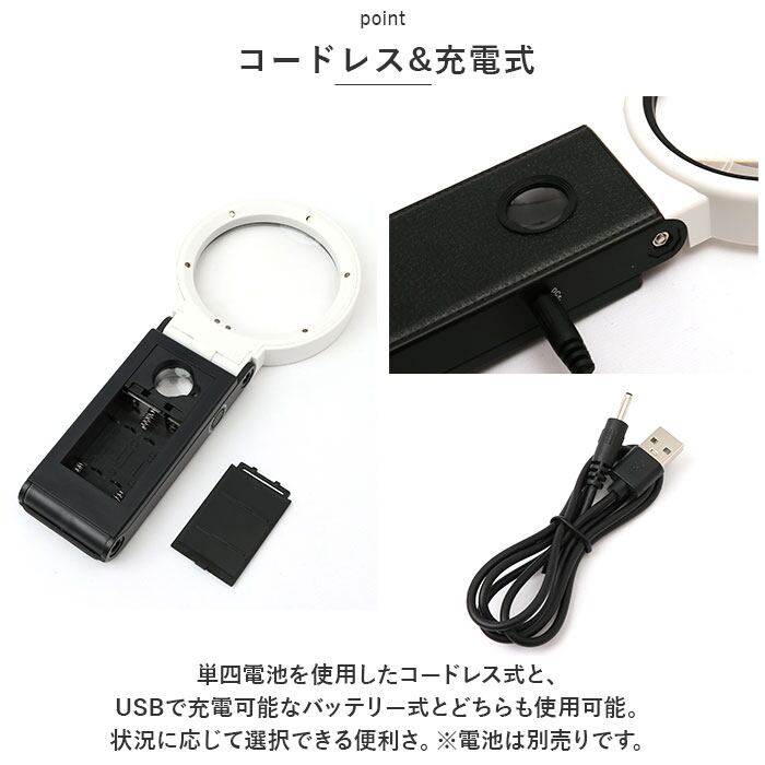 ・単四電池を使用したコードレス式と、USBで充電可能なバッテリー式とどちらも使用可能。状況に応じて選択できる便利さ。