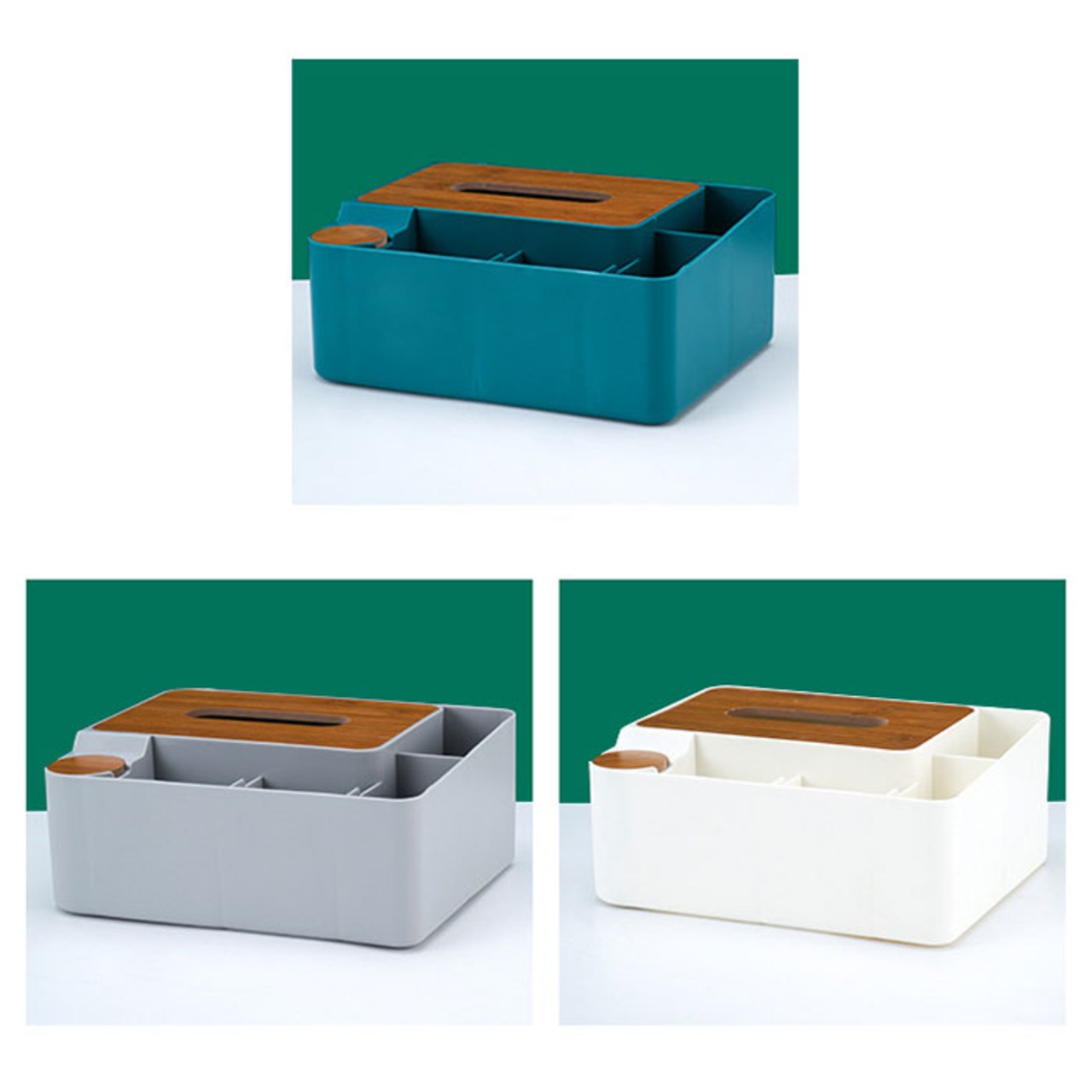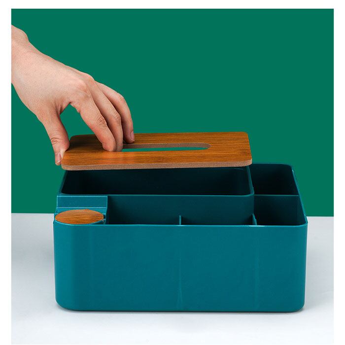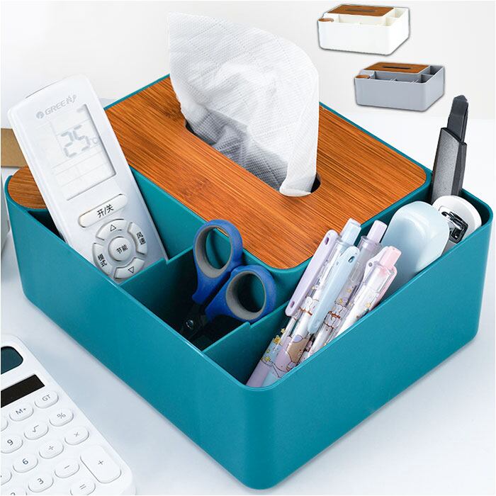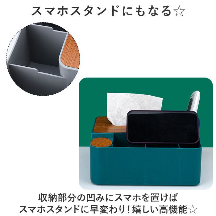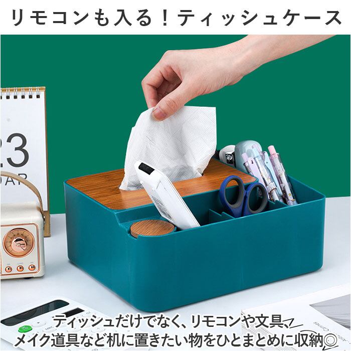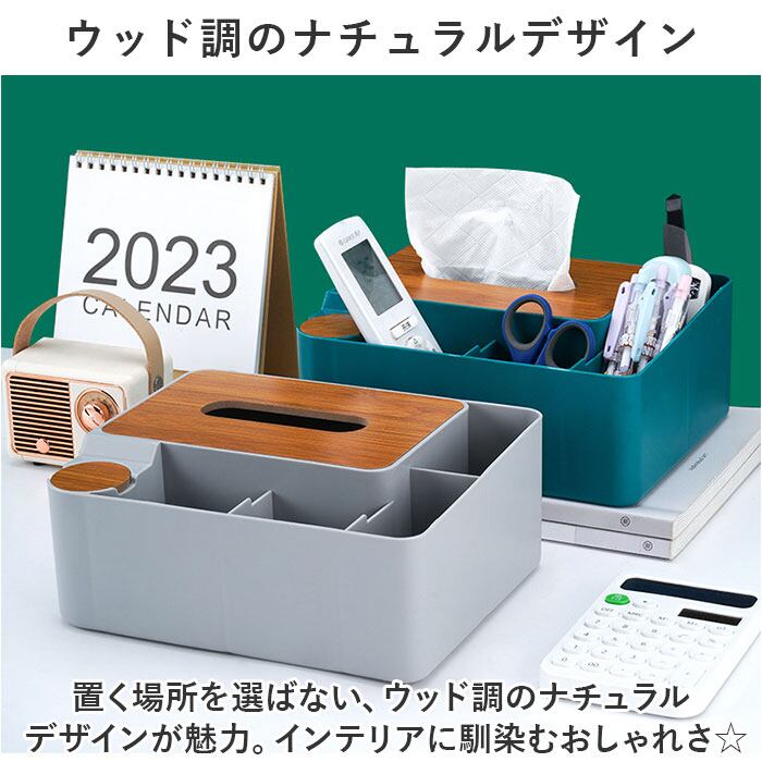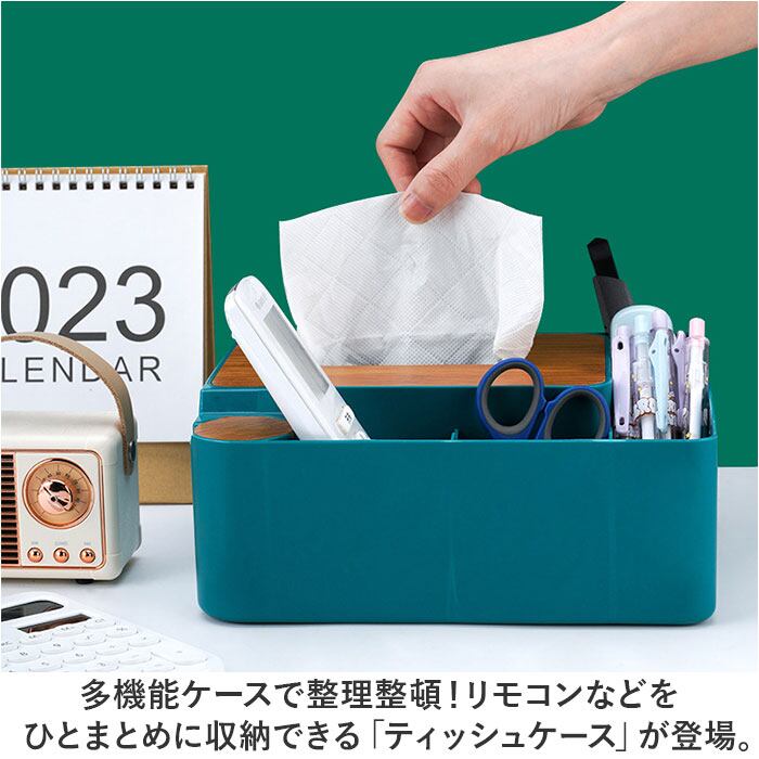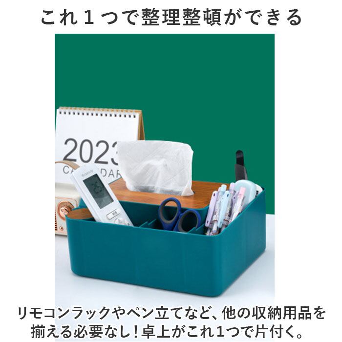・ティッシュだけでなく、リモコンや文具、メイク道具など机に置きたい物をひとまとめに収納◎