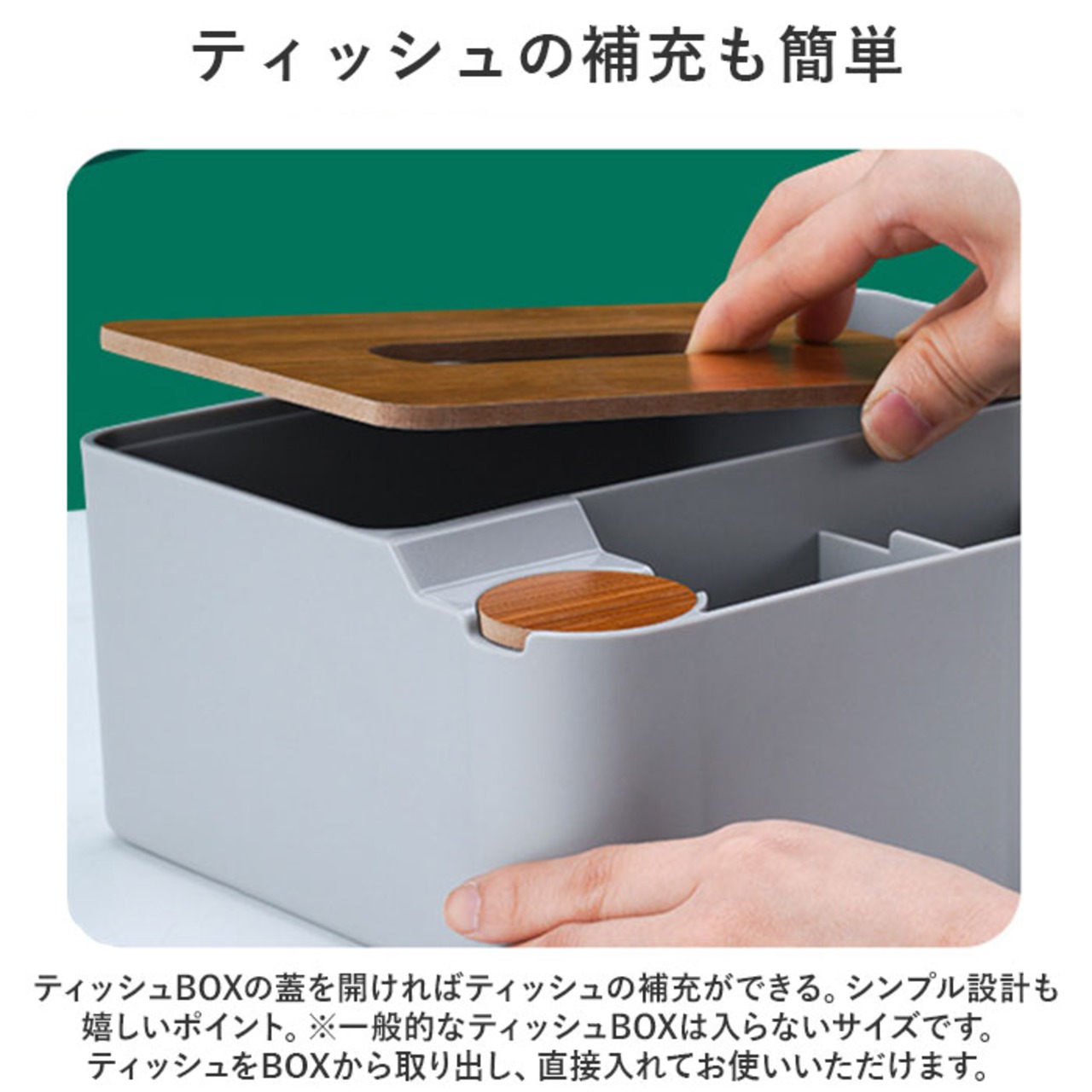 ・※一般的なティッシュBOXは入らないサイズです。ティッシュをBOXから取り出し、直接入れてお使いいただけます。