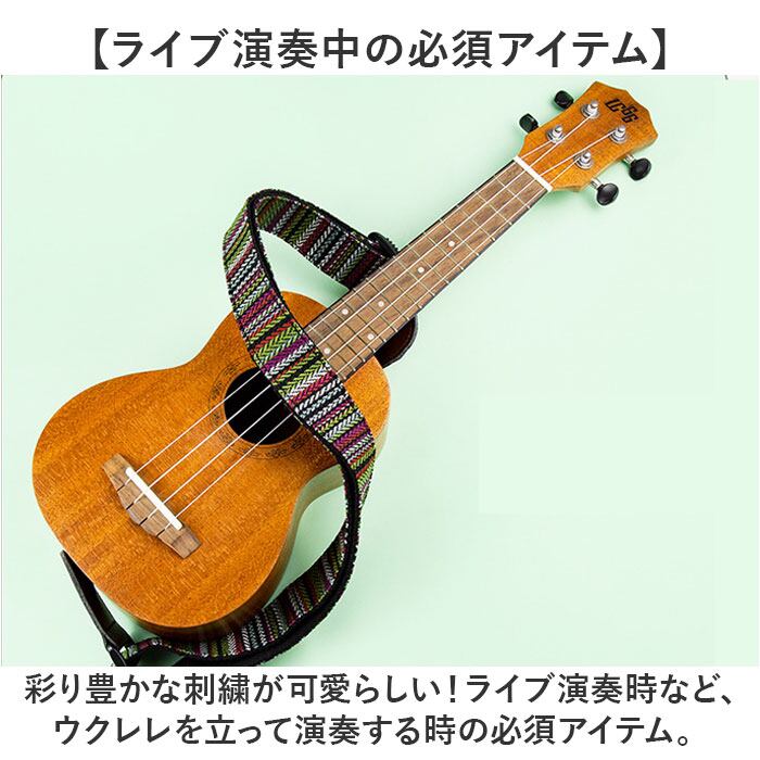・彩り豊かな刺繍が可愛らしい!ライブ演奏時など、ウクレレを立って演奏する時の必須アイテム。