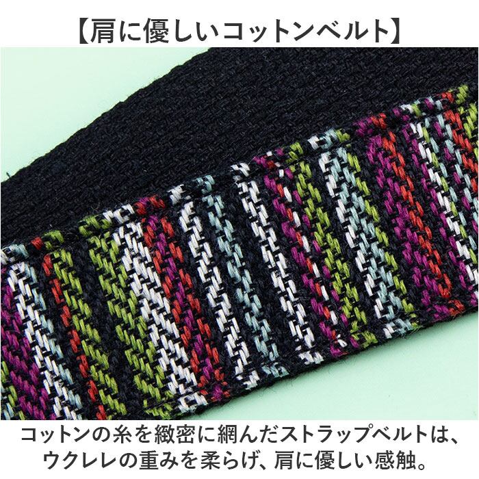 ・コットンの糸を緻密に網んだストラップベルトは、ウクレレの重みを柔らげ、肩に優しい感触。