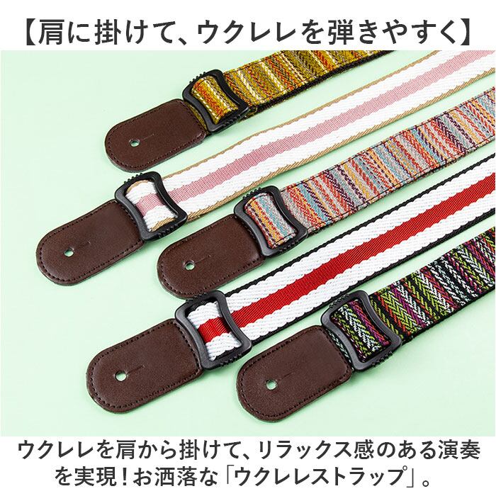 ・ウクレレを肩から掛けて、リラックス感のある演奏を実現!お洒落な「ウクレレストラップ」。