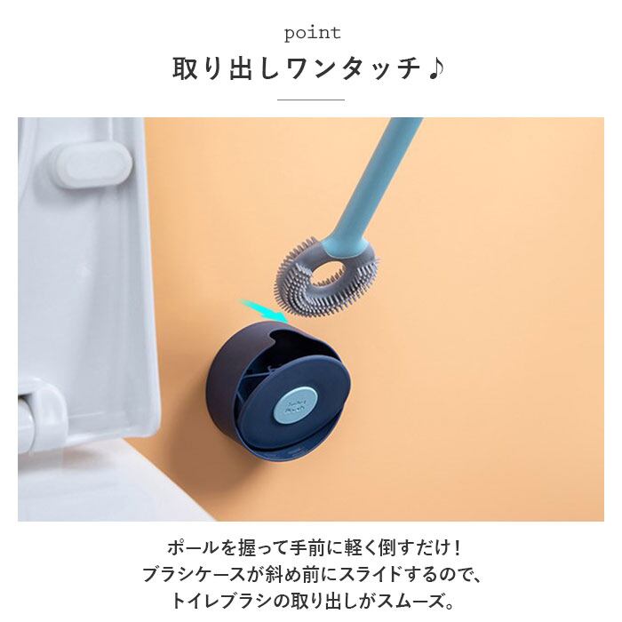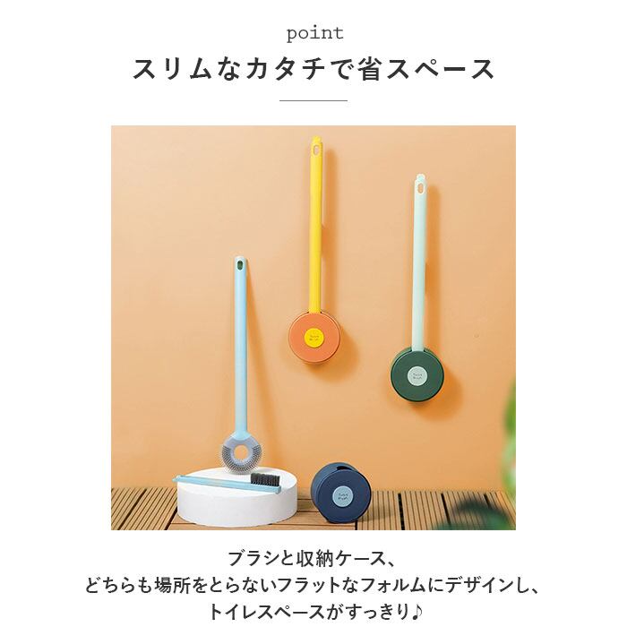 ・ブラシと収納ケース、どちらも場所をとらないフラットなフォルムにデザインし、トイレスペースがすっきり♪