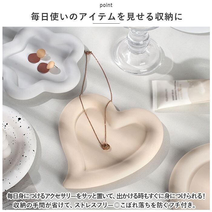・毎日身につけるアクセサリーをサッと置いて、出かける時もすぐに身につけられる!収納の手間が省けて、ストレスフリー◎こぼれ落ちを防ぐフチ付き。
