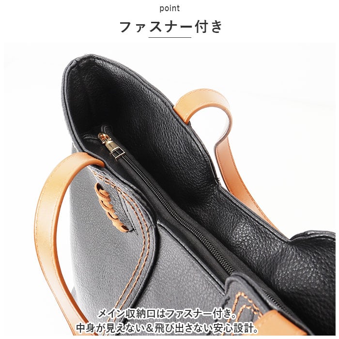 ・メイン収納口はファスナー付き。中身が見えない&飛び出さない安心設計。