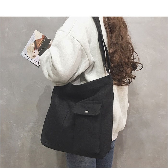 ・年代・性別問わず持ちやすい、無地のモノトーンカラー。程よい生地感のキャンバスバッグで、カジュアルコーデにぴったり。
