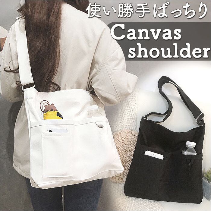 ショルダーバッグ キャンバス 無地 通販 ショルダーバック ショッピングバッグ ショッピングバック ワンショルダー ショルダー ななめかけ 斜め掛け 肩掛け A4 シンプル ポケット 縦型 軽量 軽い レディース メンズ ユニセックス 男女兼用 カジュアル