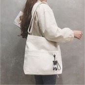 ・年代・性別問わず持ちやすい、無地のモノトーンカラー。程よい生地感のキャンバスバッグで、カジュアルコーデにぴったり。