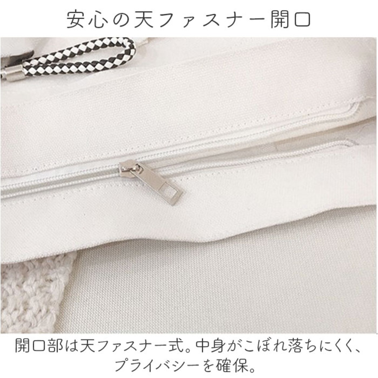 ・開口部は天ファスナー式。中身がこぼれ落ちにくく、プライバシーを確保。