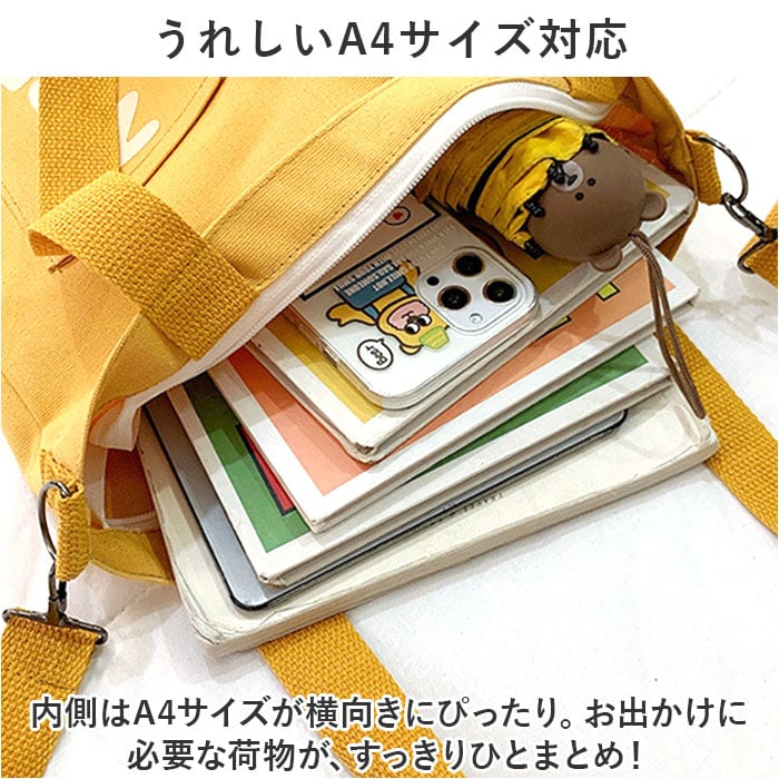 ・内側はA4サイズが横向きにぴったり。お出かけに必要な荷物が、すっきりひとまとめ!