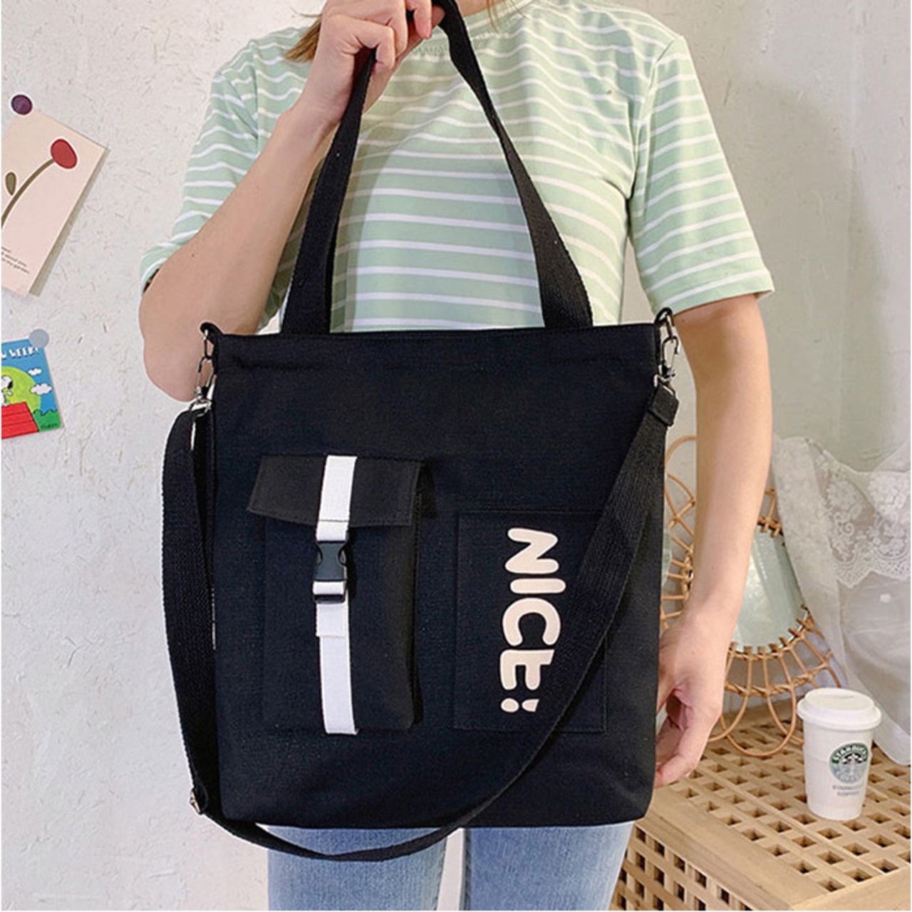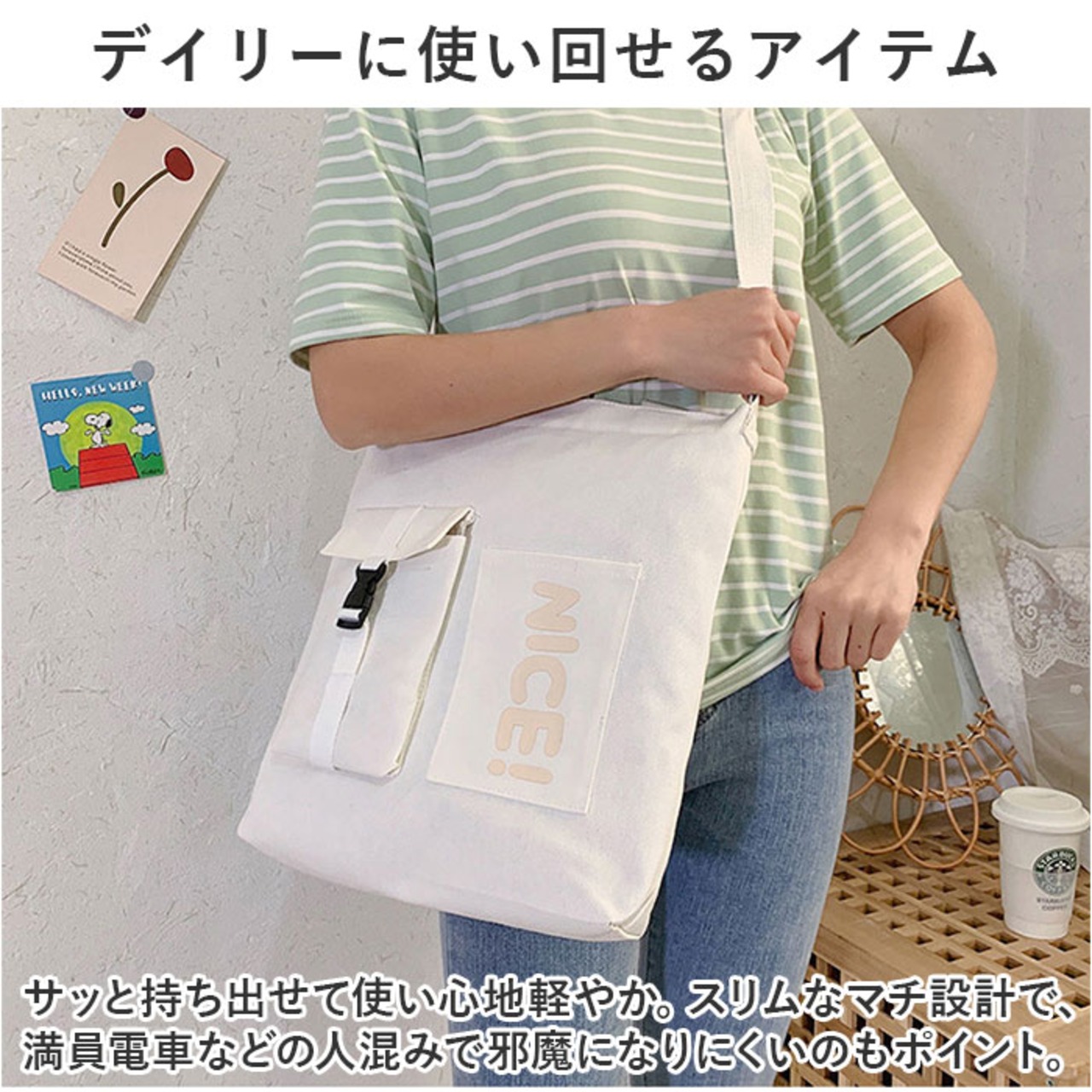 ・肩掛けはもちろん!長さ調節可能なショルダーベルトを取り付けて、斜め掛けもできる2wayタイプ。
