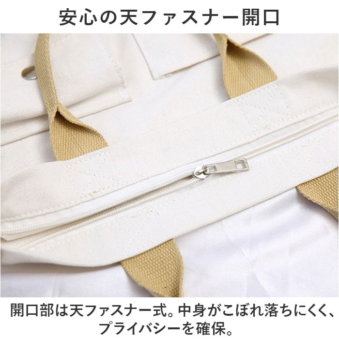 ・開口部は天ファスナー式。中身がこぼれ落ちにくく、プライバシーを確保。