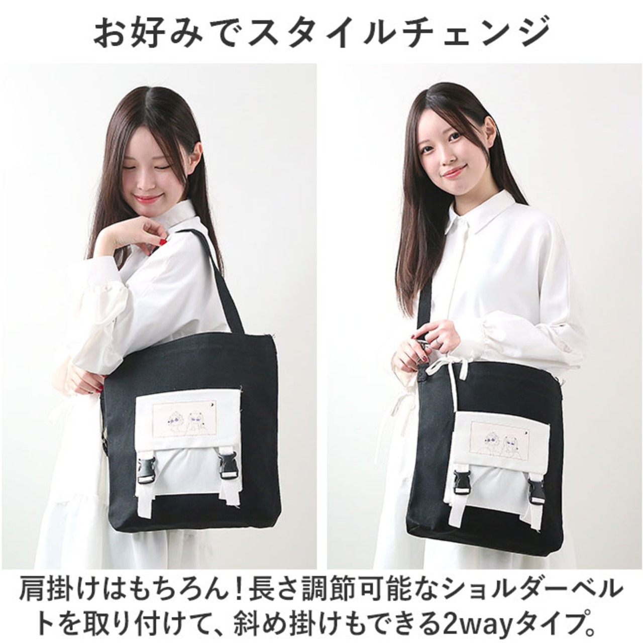 ・肩掛けはもちろん!長さ調節可能なショルダーベルトを取り付けて、斜め掛けもできる2wayタイプ。
