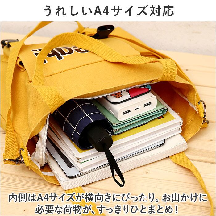 ・内側はA4サイズが横向きにぴったり。お出かけに必要な荷物が、すっきりひとまとめ!