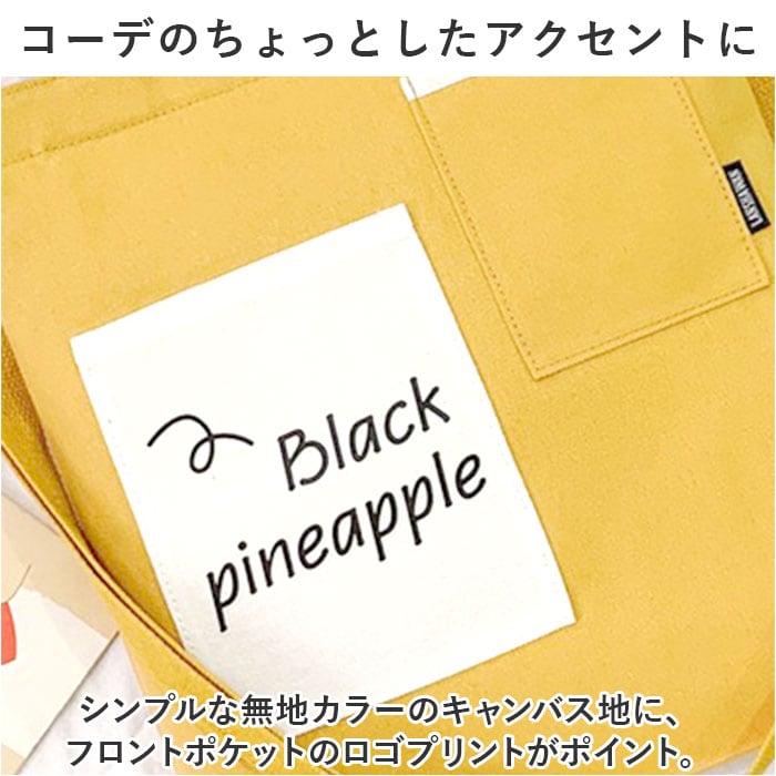 ・シンプルな無地カラーのキャンバス地に、フロントポケットのロゴプリントがポイント。