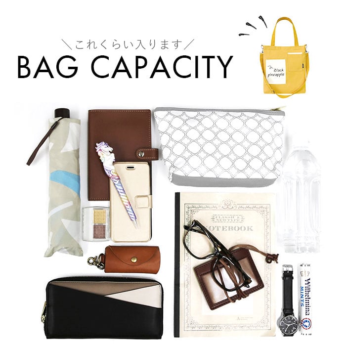 ・内側はA4サイズが横向きにぴったり。お出かけに必要な荷物が、すっきりひとまとめ!