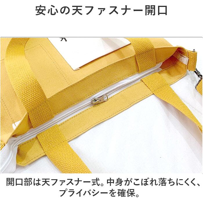 ・開口部は天ファスナー式。中身がこぼれ落ちにくく、プライバシーを確保。