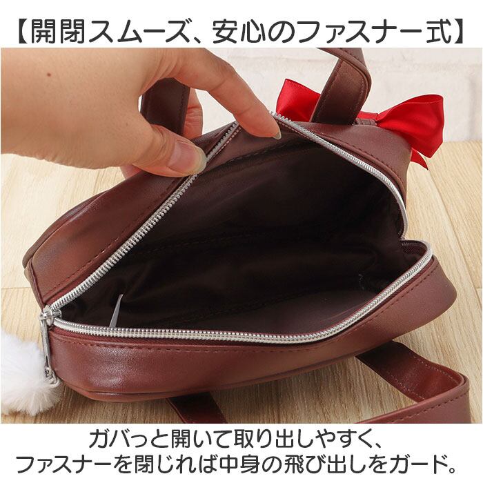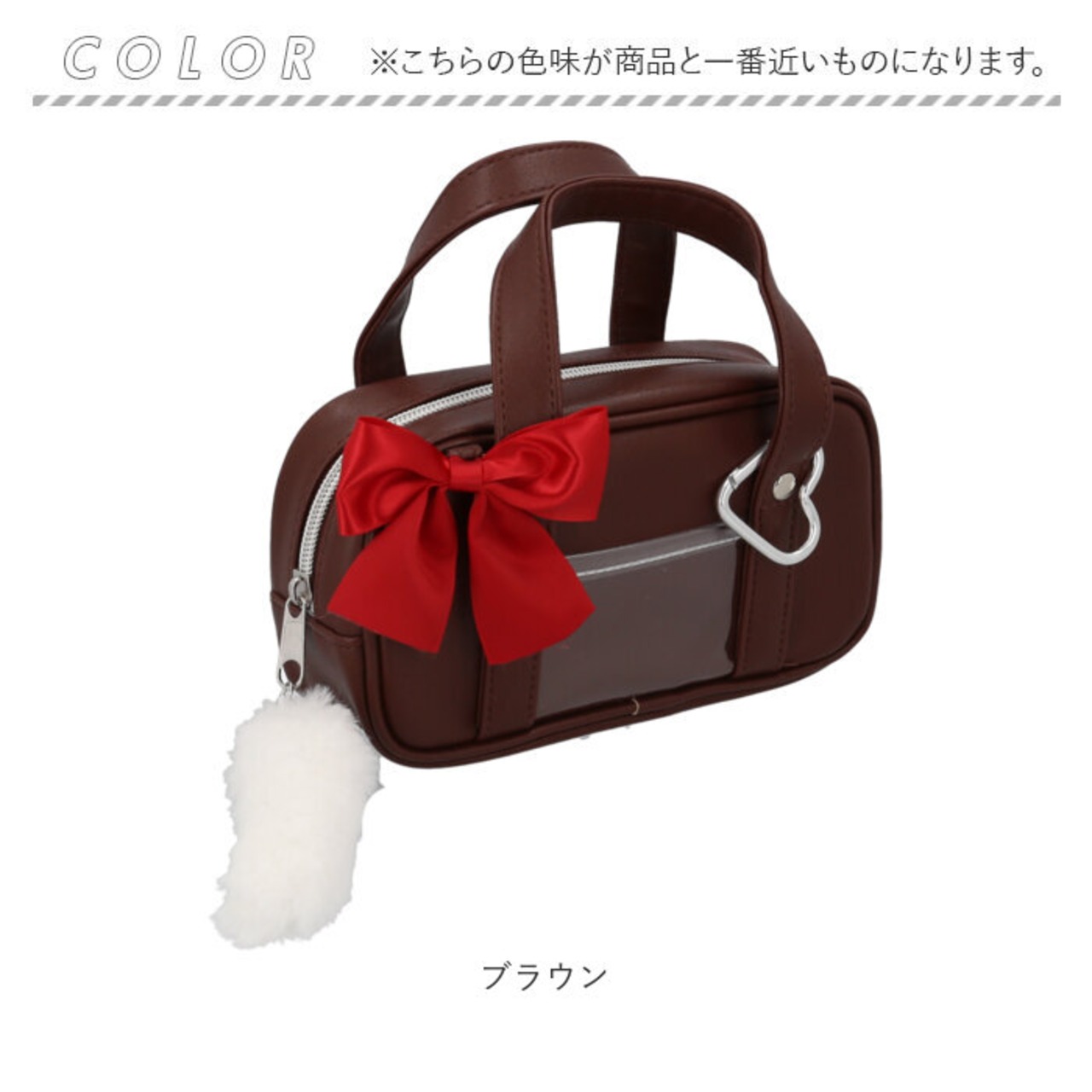 ・制服のような可愛いリボンチャーム、しっぽチャーム付きの引手☆ハート型カラビナも装備。