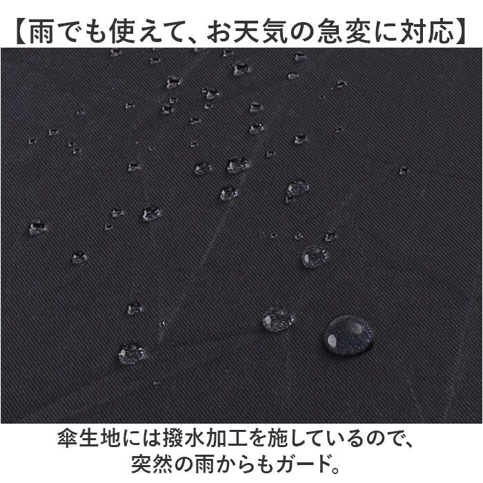 ・傘生地には撥水加工を施しているので、突然の雨からもガード。