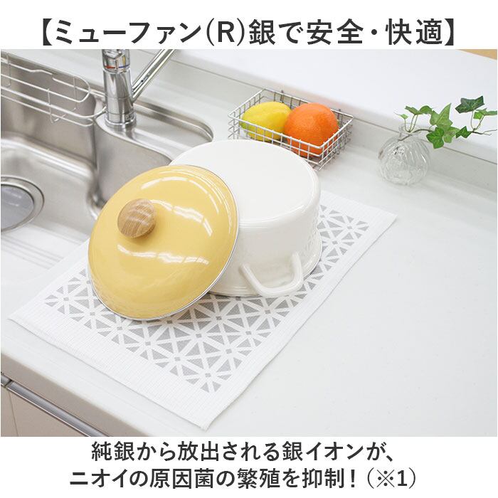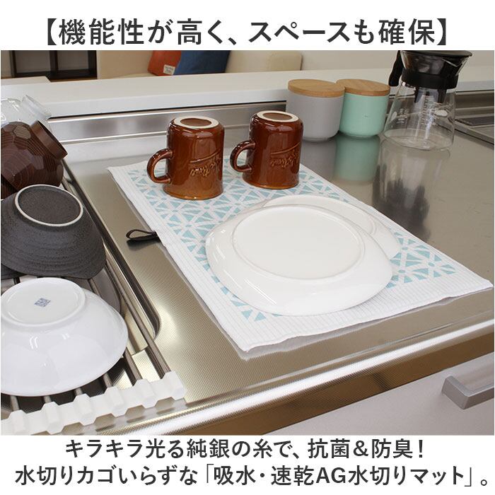 ・キラキラ光る純銀の糸で、抗菌&防臭!水切りカゴいらずな「吸水・速乾AG水切りマット」。