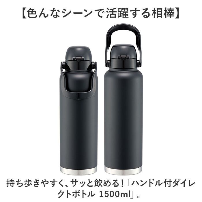 ・持ち歩きやすく、サッと飲める!「ハンドル付ダイレクトボトル 1500ml」。