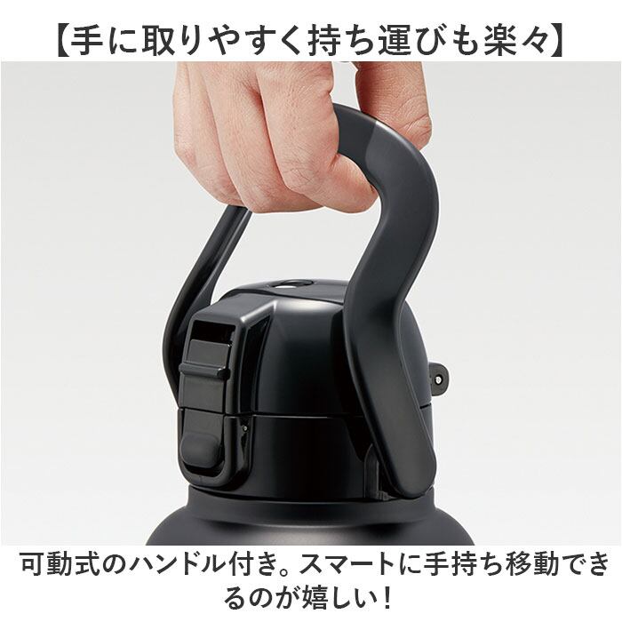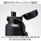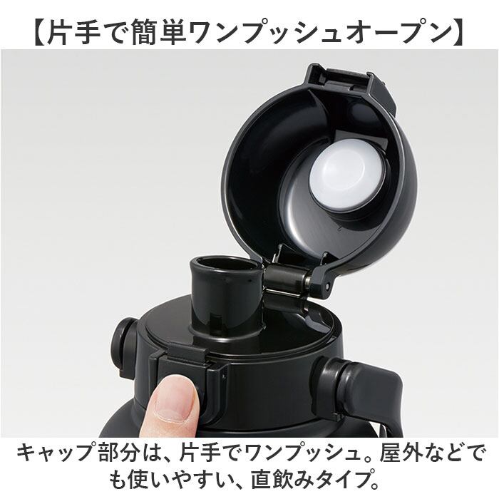 ・キャップ部分は、片手でワンプッシュ。屋外などでも使いやすい、直飲みタイプ。