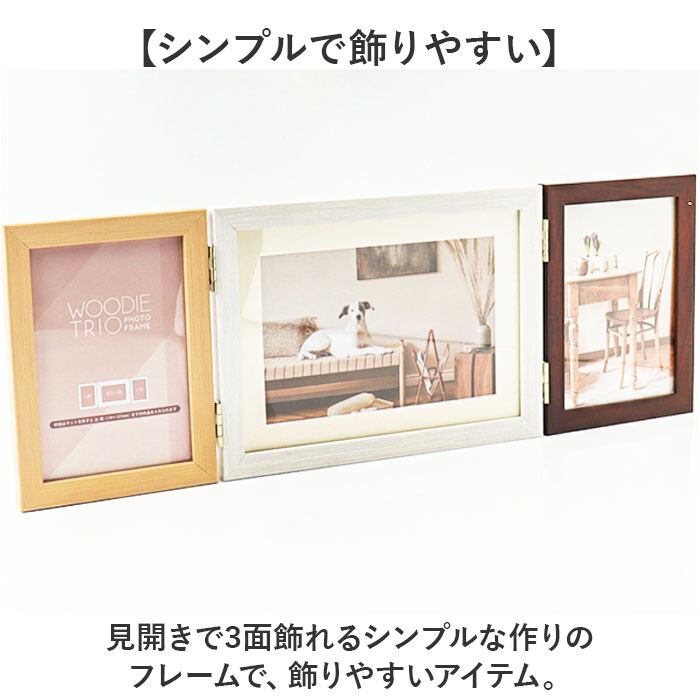 ・見開きで3面飾れるシンプルな作りのフレームで、飾りやすいアイテム。