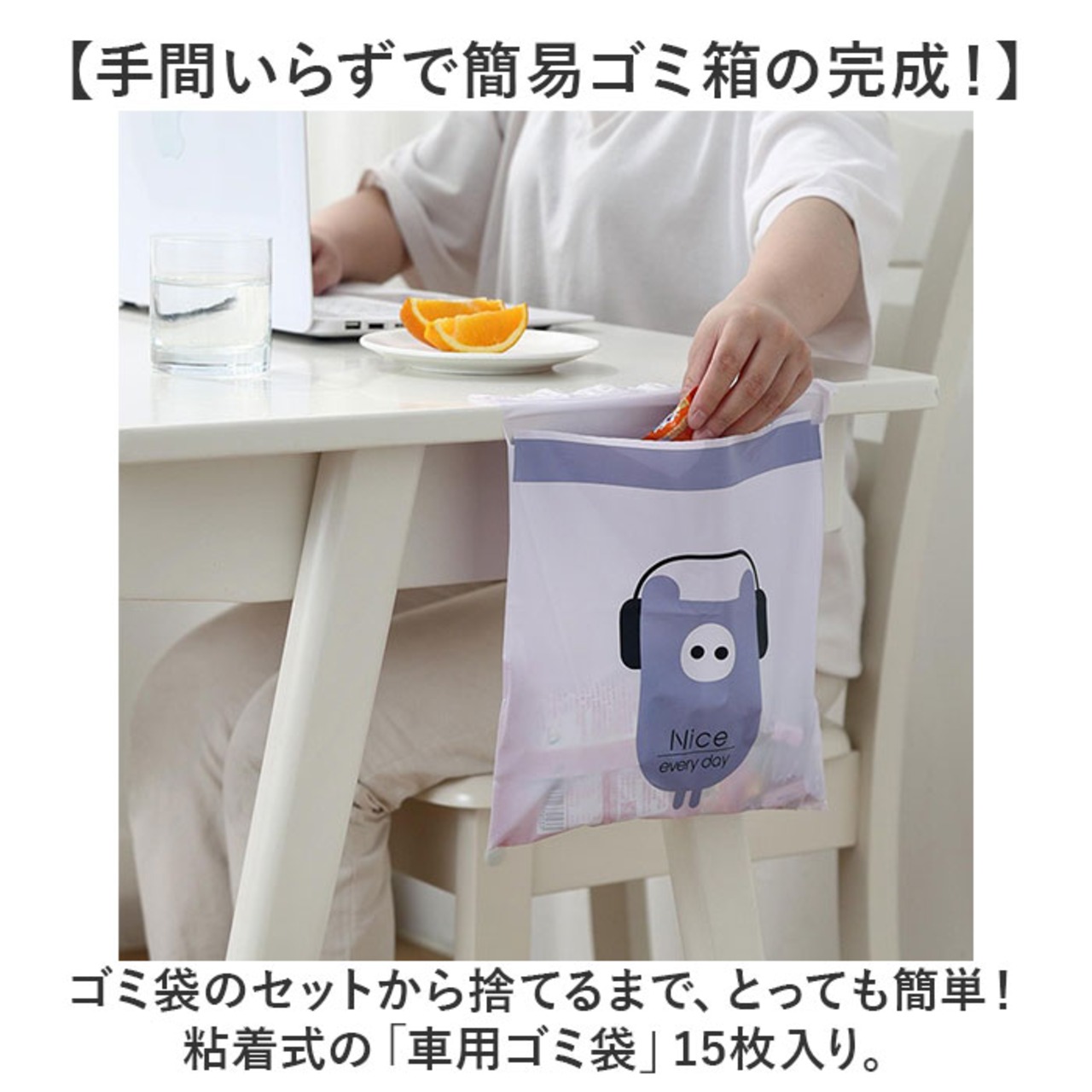 車内 ゴミ袋 15枚 通販 キッチン ゴミ 袋 使い捨てゴミ袋 ポリ袋 31×25cm エチケット袋 嘔吐 便利グッズ 車内グッズ 便利 粘着式 かわいい 小さめ 車内アクセサリー 車用品 カーアクセサリー 旅行 雑貨 グッズ