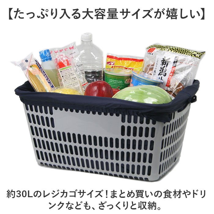 ・約30Lのレジカゴサイズ!まとめ買いの食材やドリンクなども、ざっくりと収納。