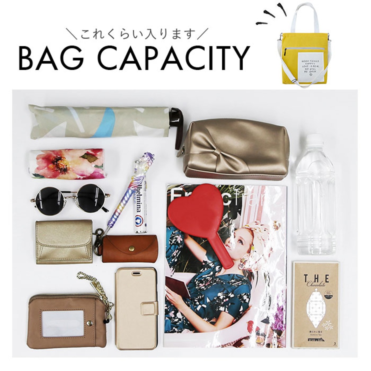 ・内側はA4サイズが横向きにぴったり。お出かけに必要な荷物が、すっきりひとまとめ!