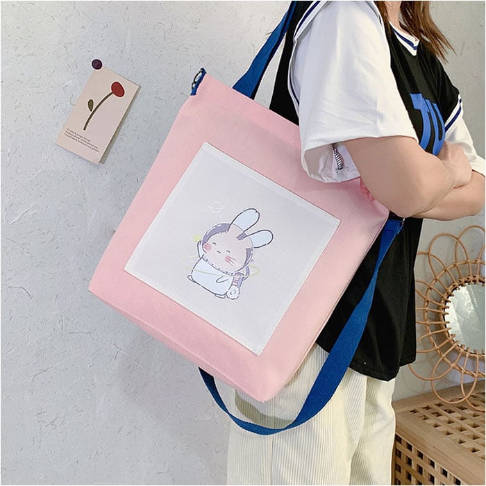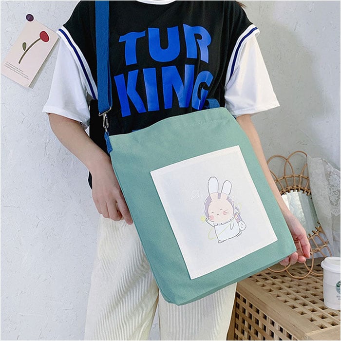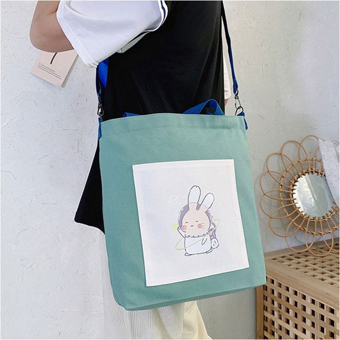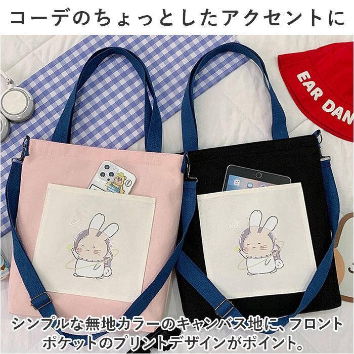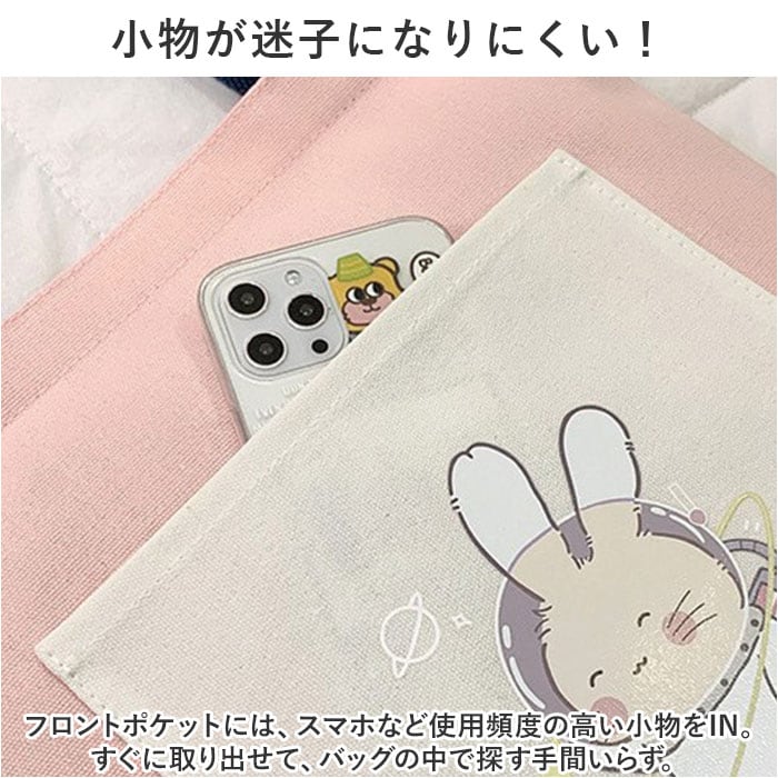 ・シンプルな無地カラーのキャンバス地に、フロントポケットのプリントデザインがポイント。