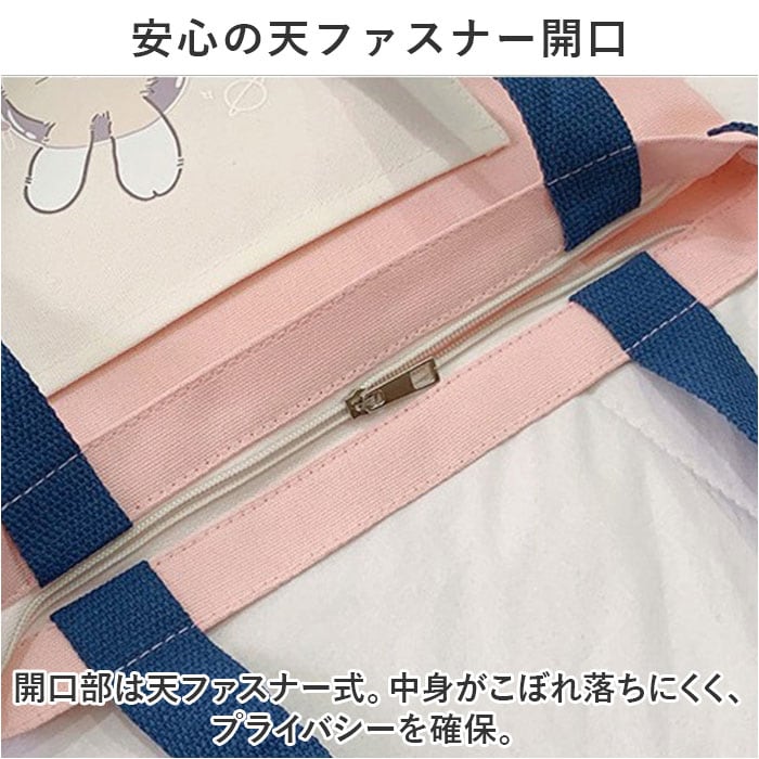 ・開口部は天ファスナー式。中身がこぼれ落ちにくく、プライバシーを確保。