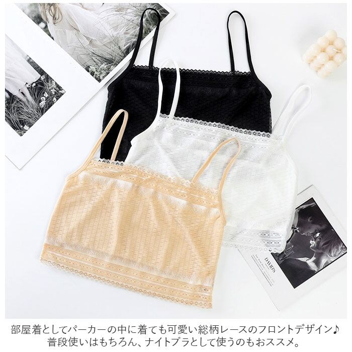 ・部屋着としてパーカーの中に着ても可愛い総柄レースのフロントデザイン♪
