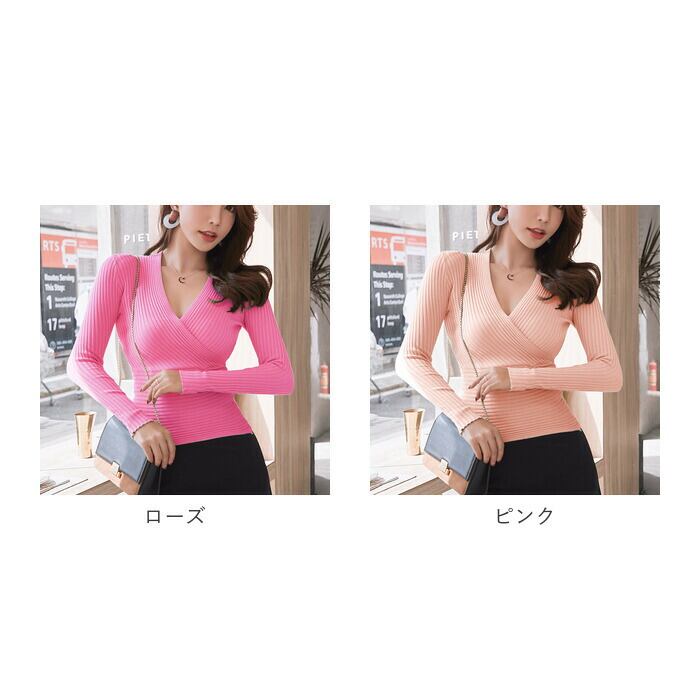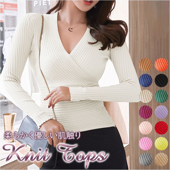 トップス レディース ニット 通販 Vネック 薄手 タイト きれいめ カジュアル セクシー リブ 生地 細見え 春夏 秋冬 オールシーズン 伸縮 ストレッチ フィット おしゃれ シンプル 無地 大人 かわいい 可愛い 長袖ニット トップス レディースファッション