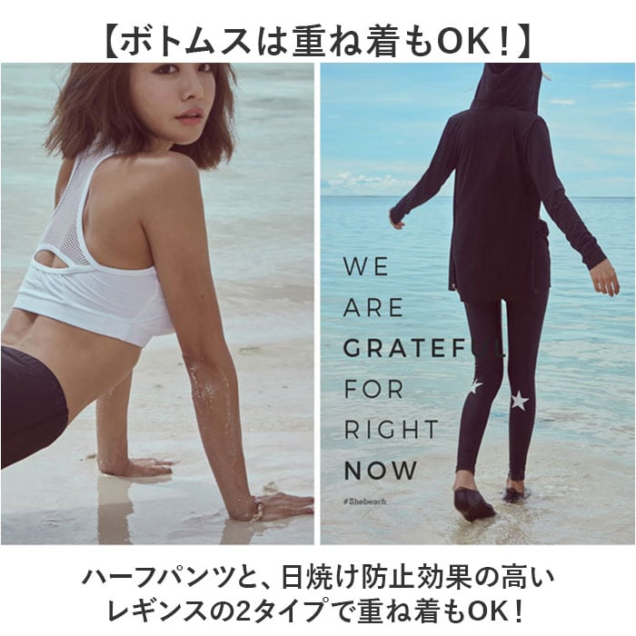 ・ハーフパンツと、日焼け防止効果の高いレギンスの2タイプで重ね着もOK!