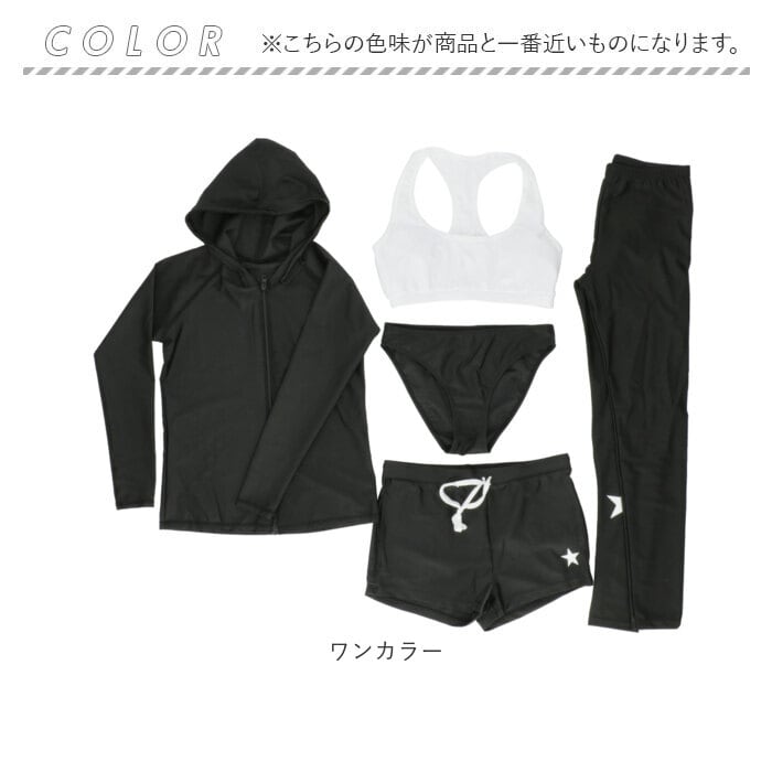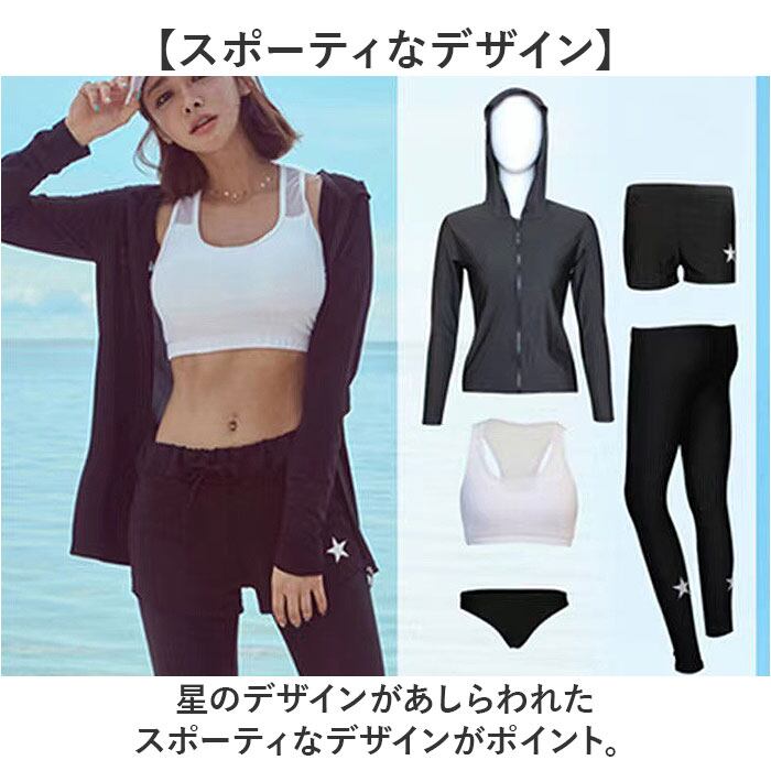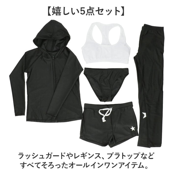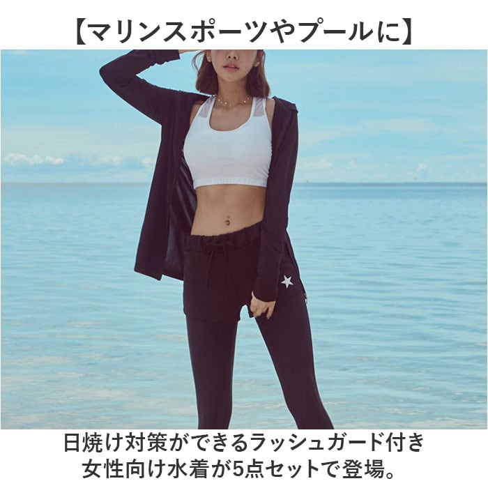 ・日焼け対策ができるラッシュガード付き女性向け水着が5点セットで登場。