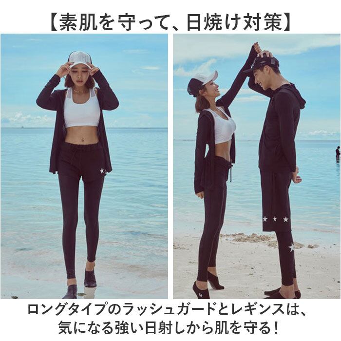 ・ロングタイプのラッシュガードとレギンスは、気になる強い日射しから肌を守る!