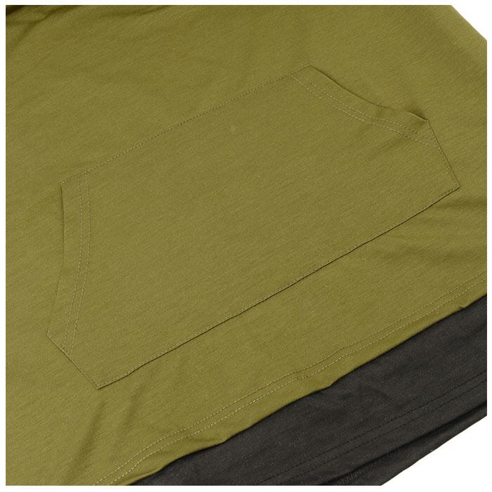 ・シンプルながらもこだわりを感じるダブルデザインの襟口、袖口、裾口。レイヤードスタイル風の遊び心のあるデザインで、こなれ感のあるオシャレさを◎