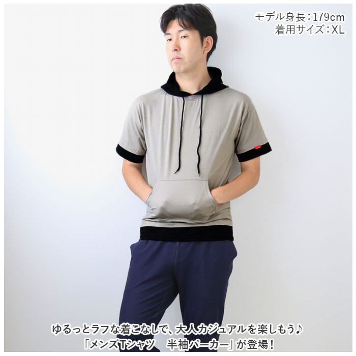 ・ゆるっとラフな着こなしで、大人カジュアルを楽しもう♪「メンズTシャツ 半袖パーカー」が登場!