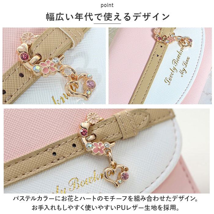 ・パステルカラーにお花とハートのモチーフを組み合わせたデザイン。