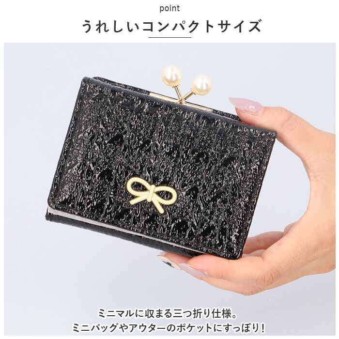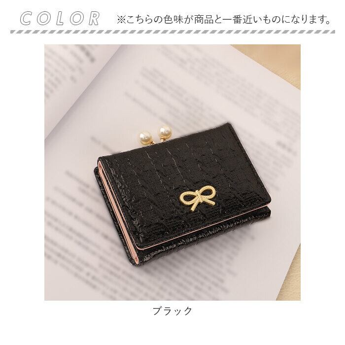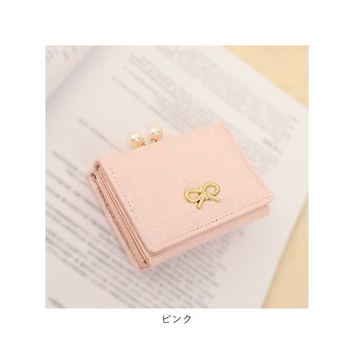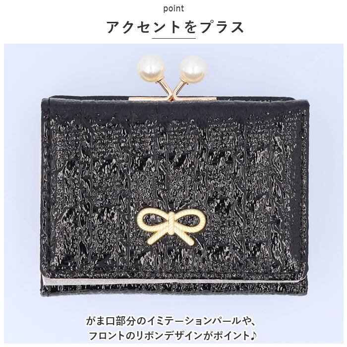・がま口部分のイミテーションパールや、フロントのリボンデザインがポイント♪