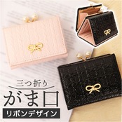 三つ折り 財布 レディース がま口 通販 三つ折り財布 折り財布 ウォレット リボン スパンコール 小銭入れ お札入れ カード入れ 小銭 カード お札 マルチカード コンパクト かわいい おしゃれ