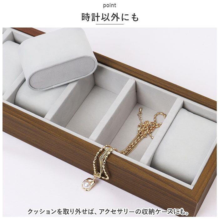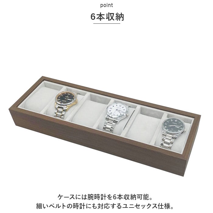 ・ケースには腕時計を6本収納可能。細いベルトの時計にも対応するユニセックス仕様。
