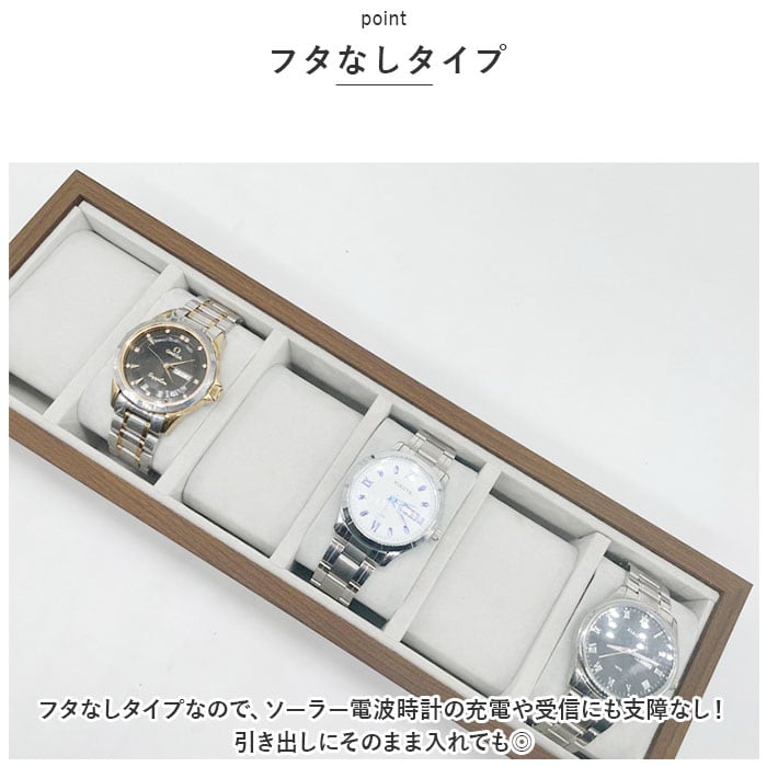 ・フタなしタイプなので、ソーラー電波時計の充電や受信にも支障なし!引き出しにそのまま入れても◎