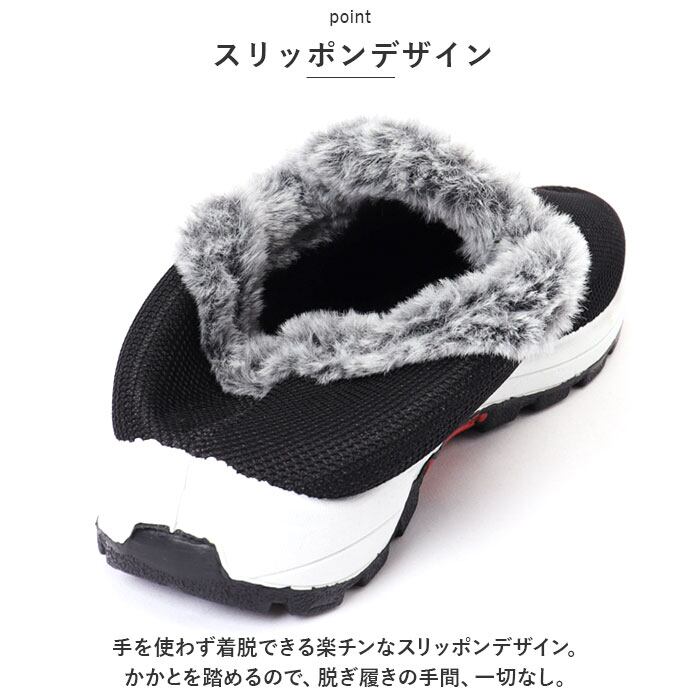・手を使わず着脱できる楽チンなスリッポンデザイン。かかとを踏めるので、脱ぎ履きの手間、一切なし。