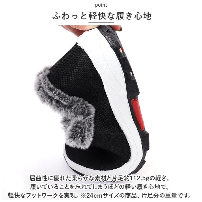 ・履き口にはふわふわ裏起毛素材、内側にも肌触りの良いボア素材を採用。冷える足元を優しく包み込んでくれて、ポカポカ♪