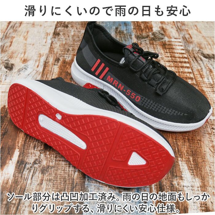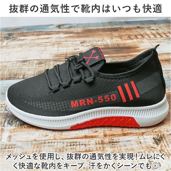 ・メッシュを使用し、抜群の通気性を実現!ムレにくく快適な靴内をキープ。汗をかくシーンでも◎