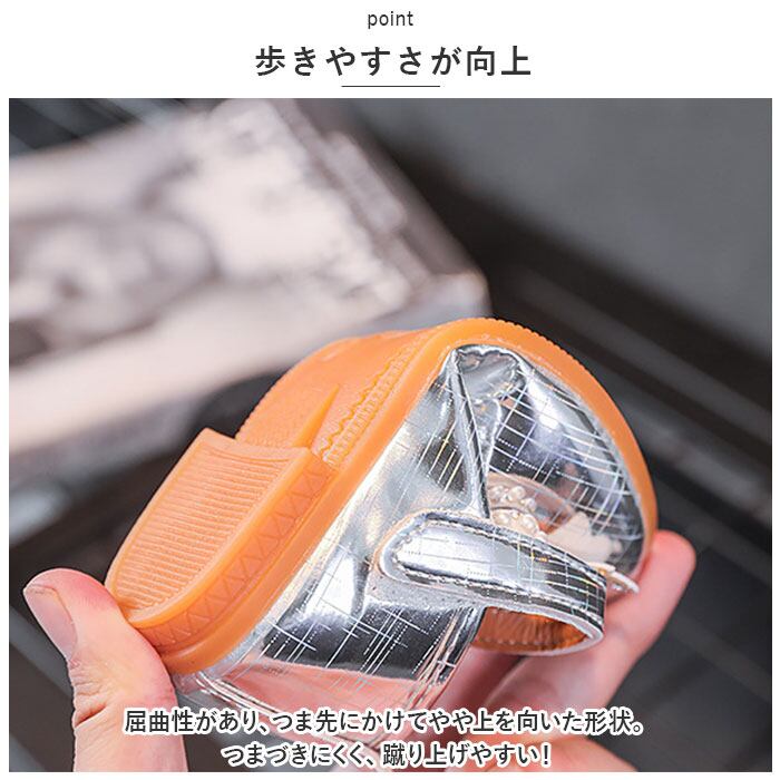 ・前後の差を抑えたほぼフラットなソール。滑りにくい素材で、濡れた路面でも安心。